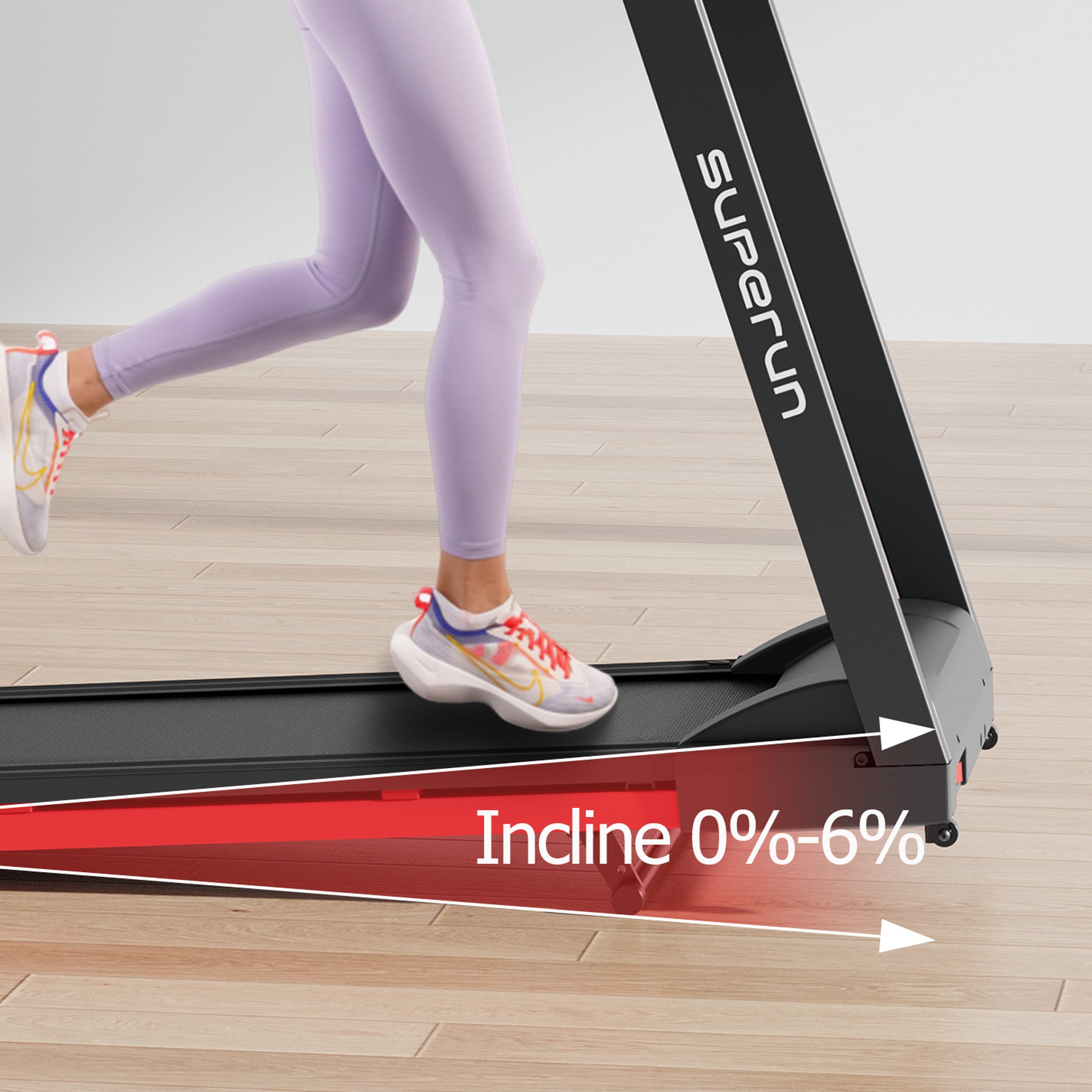 The SupeRun AS02 Foldable Treadmill with Incline is a reliable source of exercise and fitness for anyone with a small space. With incline, you can burn more calories,generates more muscle activity and improve cardiovascular fitness more. It can quickly and easily be folded up for storage and moved with its built-in wheels. It is capable of supporting up to 350 lbs., and comes with the PitPat health app, which allows you to track fitness data or share with friends.