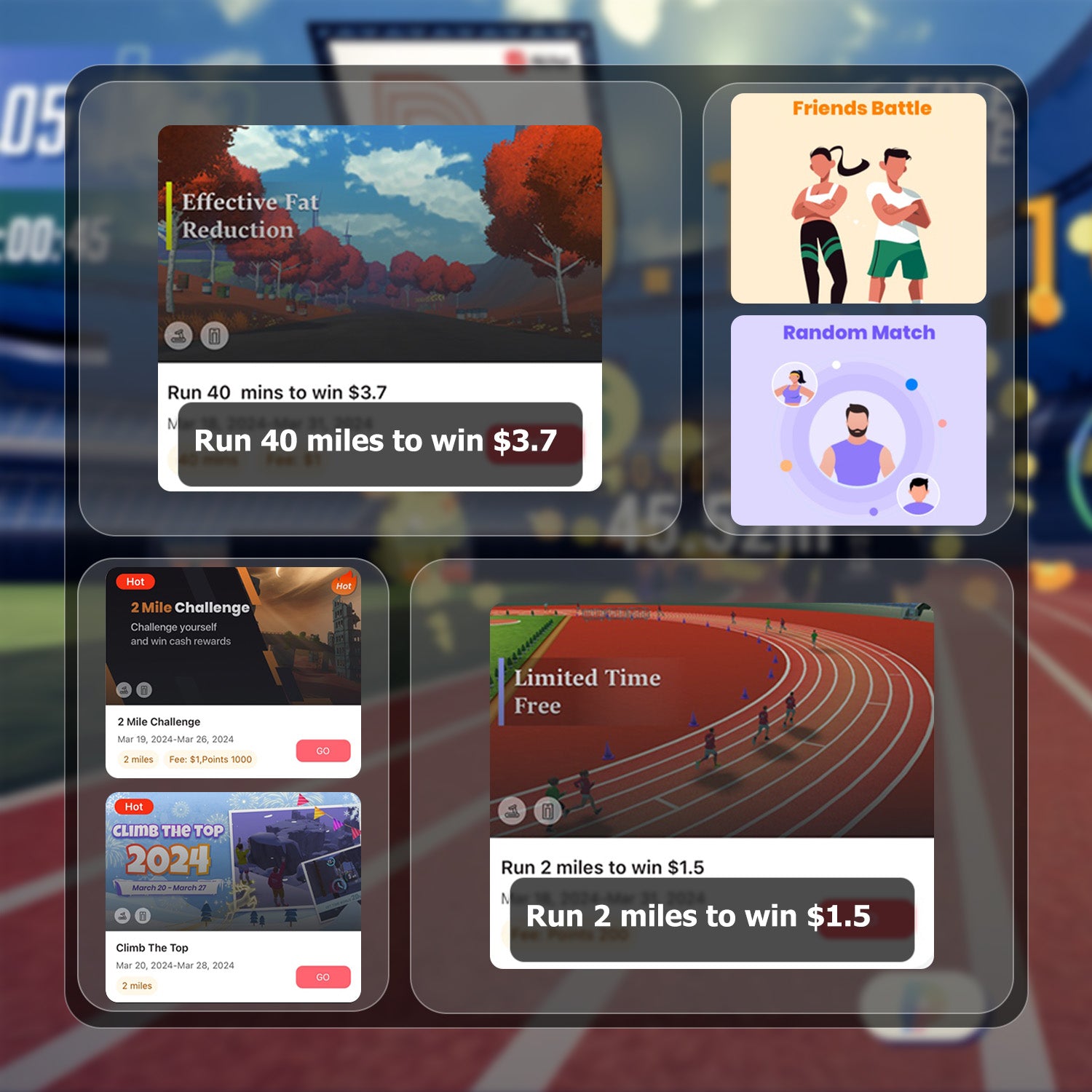 Rewards await when you join races! From the allure of real cash prizes to in-app virtual costumes, medals, and race coupons to join more races and win more rewards, there's something for everyone.