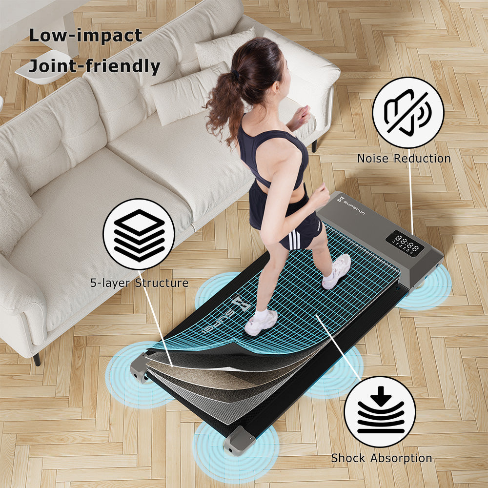 With its 42"D x 20"W x 4"H dimension, which is much smaller than other walking pads, this innovative walking pad is designed to seamlessly fit into your lifestyle without taking up much space.