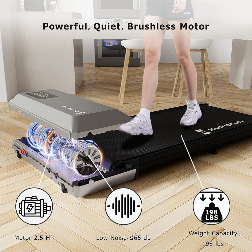 This portable and slim SupeRun® BA04 Mini WalkingPad fits in tight spaces and offers an ideal exercise solution for those with limited home space. Its small size of 42" deep x 20" wide x 4" high and lightweight design of 41.9lbs allow it to be easily moved and stored away when not in use. Controlled with a remote, its 2.5 HP motor features a whisper-quiet brushless motor, and can easily be adjusted to meet a variety of fitness goals.